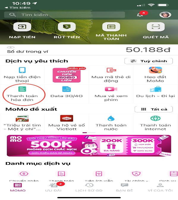- Chọn “Thanh toán hóa đơn”