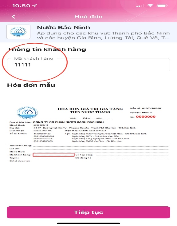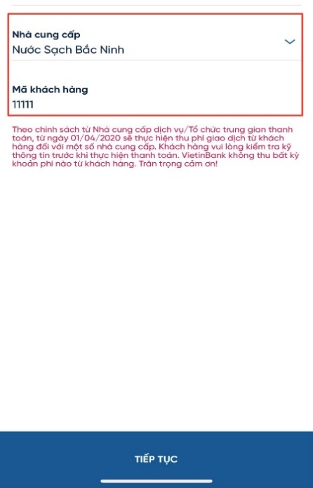 - Bước 4: Nhập “mã khách hàng”
