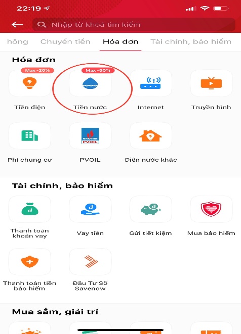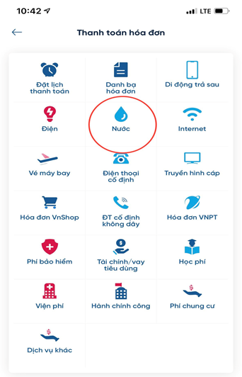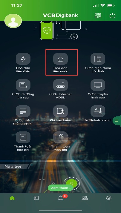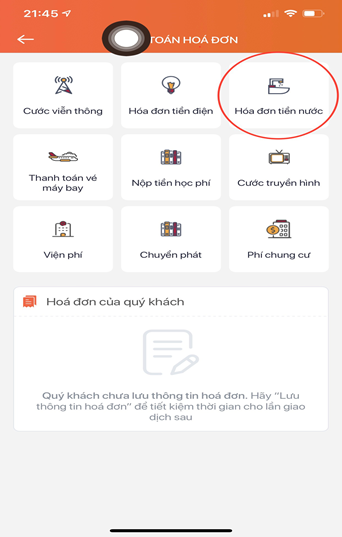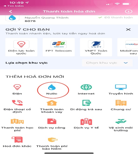 - Chọn “Hóa đơn tiền nước”