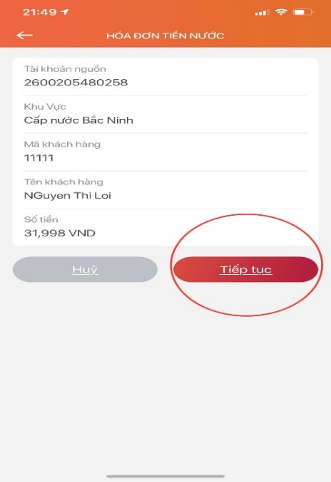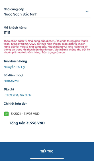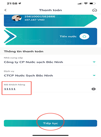 Đối với khách hàng đã biết mã khách hàng có thể thanh toán hóa đơn tiền nước qua ứng dụng điện tử như sau: