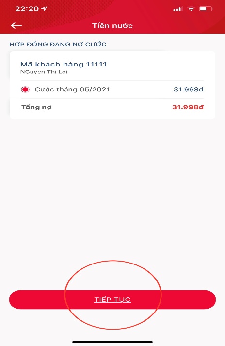 - Đăng nhập và Chọn “ Tiền nước”