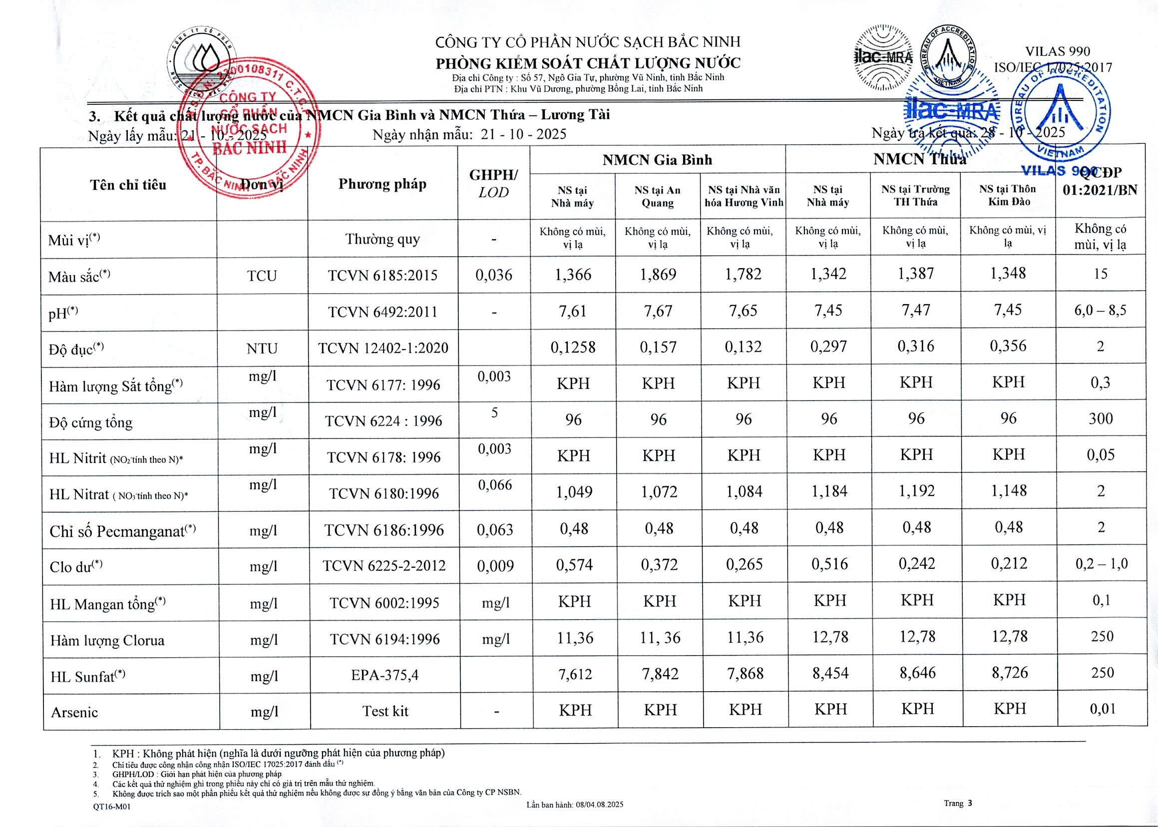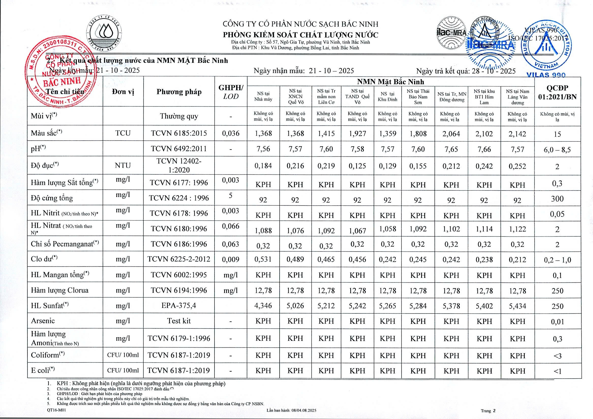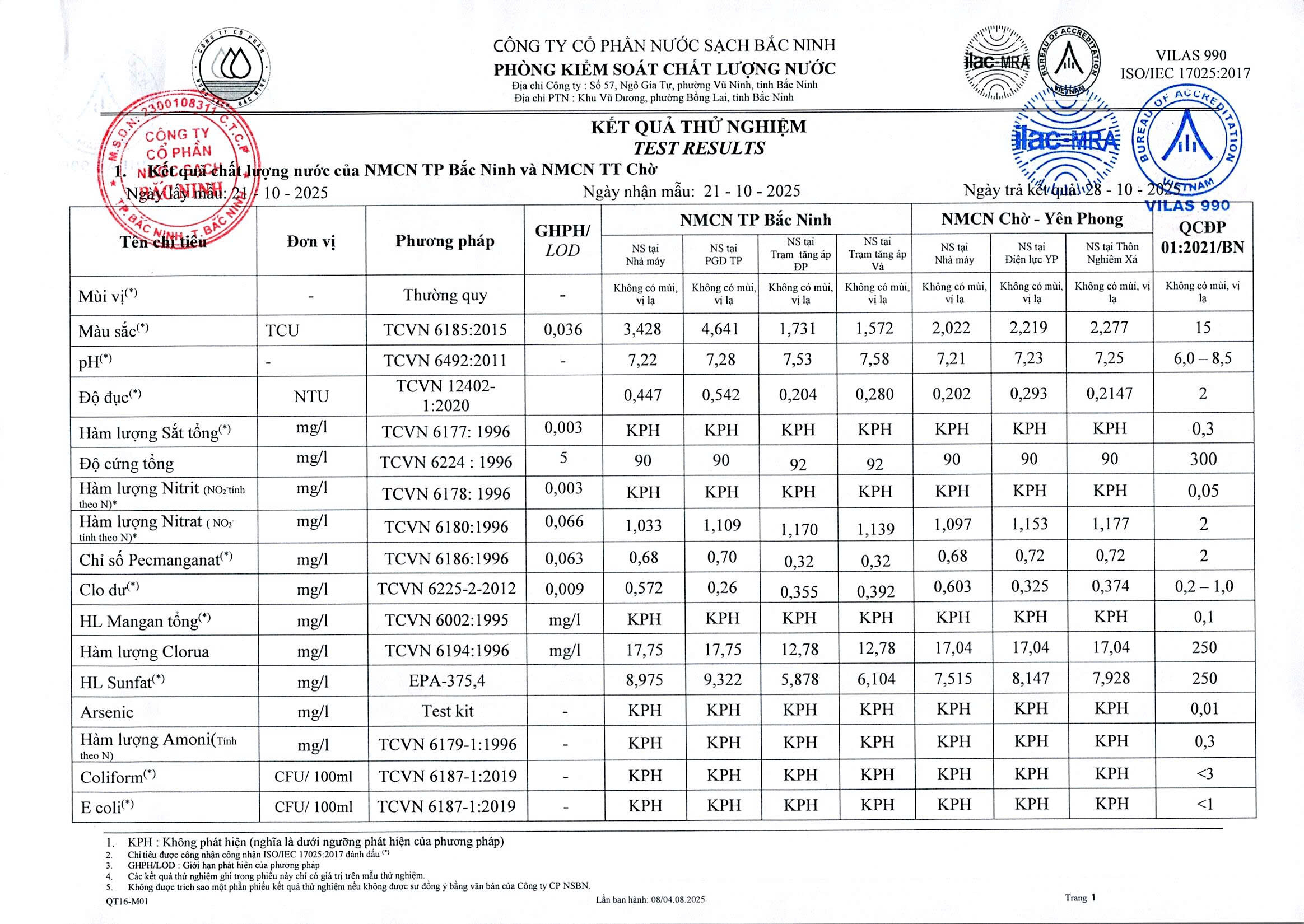 Chất lượng nước tháng 10 năm 2025 Đăng bởi Công ty cổ phần nước sạch Bắc Ninh vào lúc 29/10/2025 Chia sẻ: Tin liên quan Chất lượng nước tháng 10 năm 2025 Chất lượng nước tháng 9 năm 2025 Chất lượng nước tháng 8 năm 2025 Chất lượng nước tháng 7 năm 2025 Chất lượng nước tháng 6 năm 2025