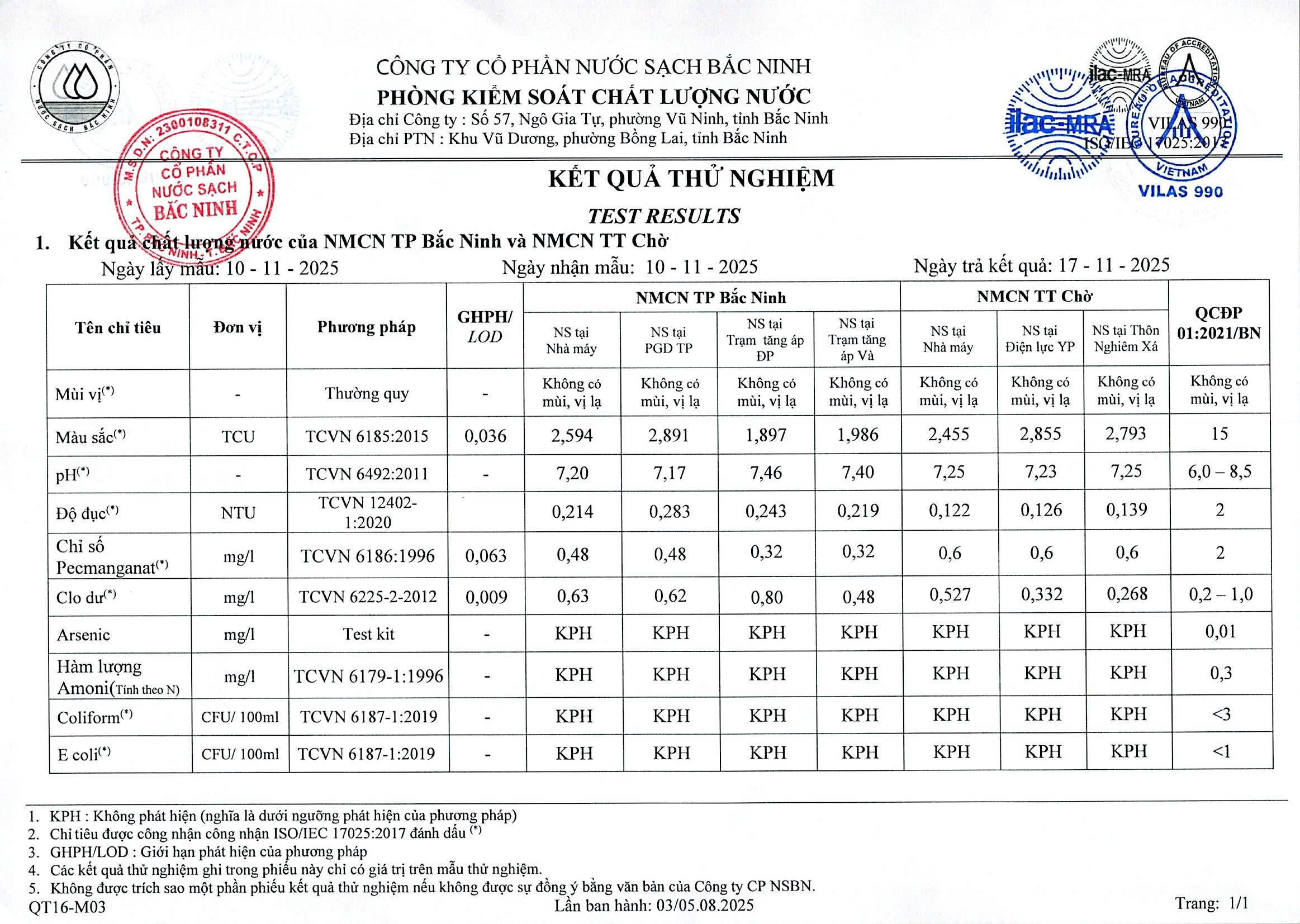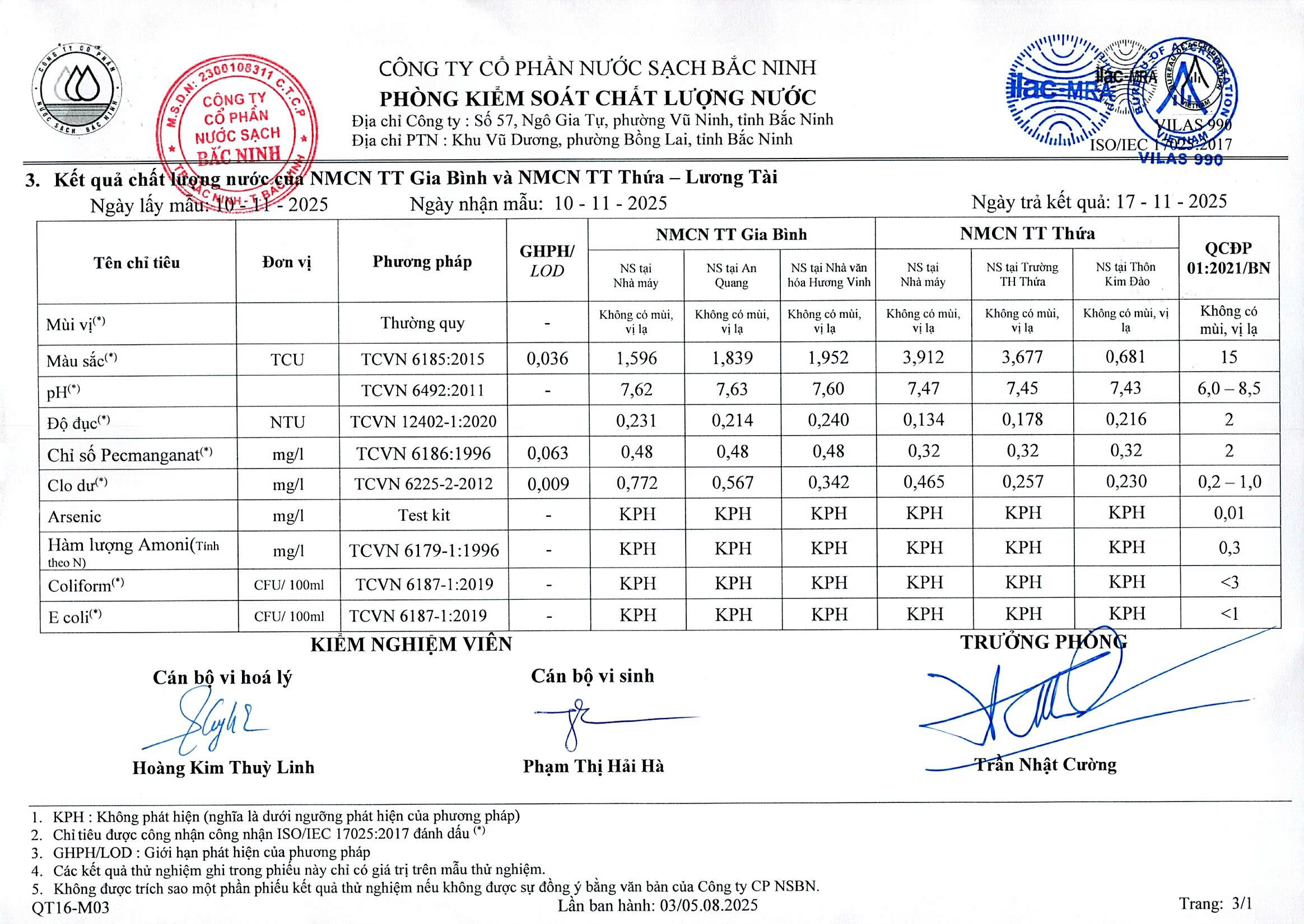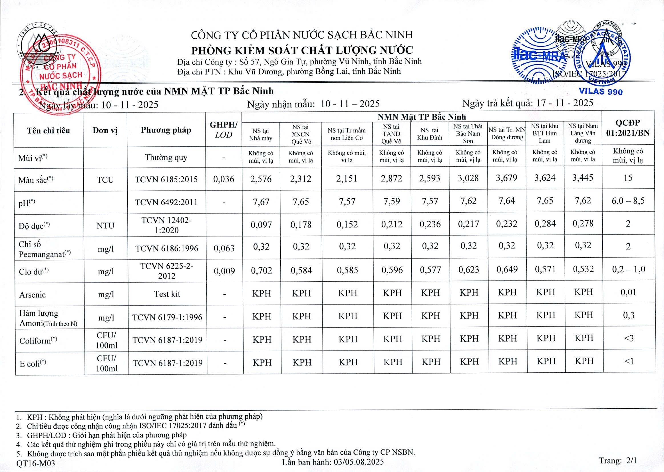 Chất lượng nước tháng 11 năm 2025 Đăng bởi Công ty cổ phần nước sạch Bắc Ninh vào lúc 18/11/2025 Chia sẻ: Tin liên quan Chất lượng nước tháng 11 năm 2025 Chất lượng nước tháng 10 năm 2025 Chất lượng nước tháng 9 năm 2025 Chất lượng nước tháng 8 năm 2025 Chất lượng nước tháng 7 năm 2025