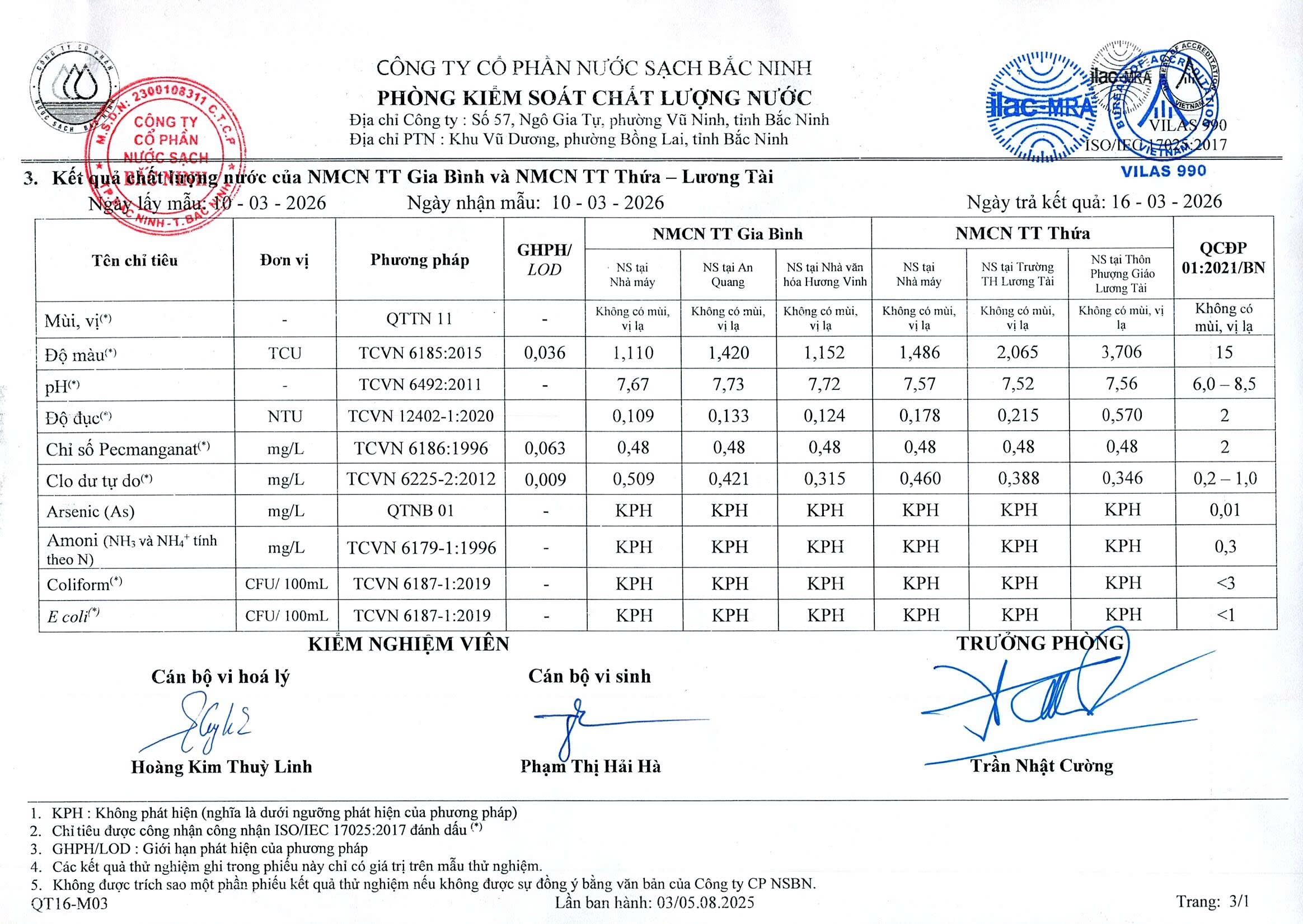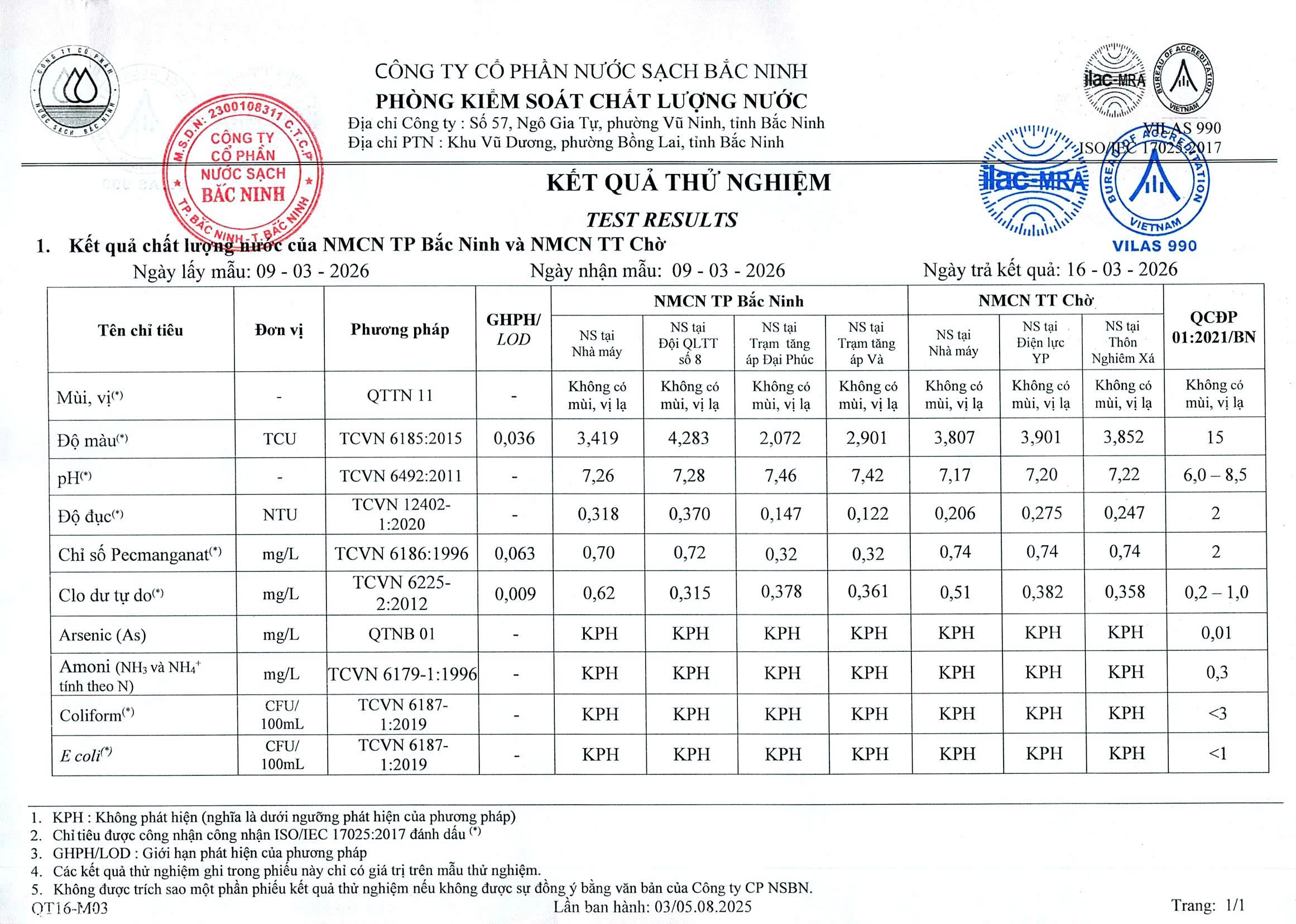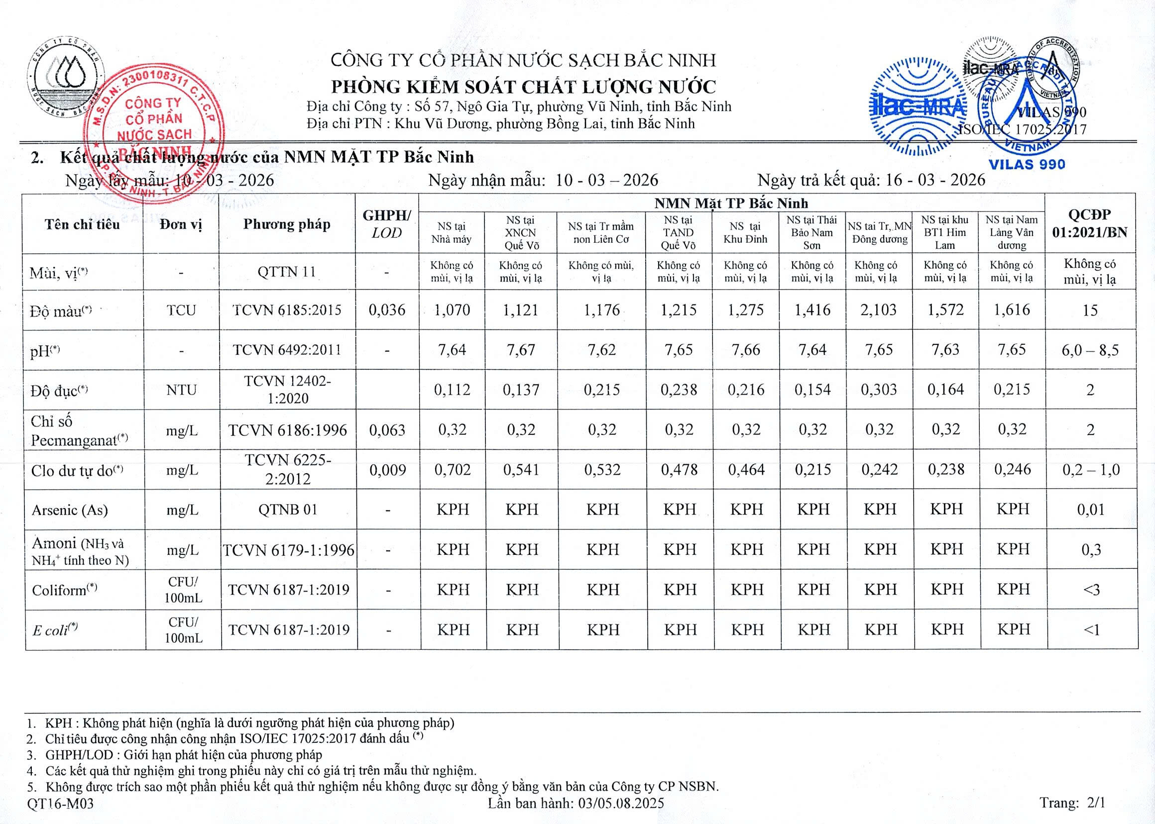 Chất lượng nước tháng 3 năm 2026 Đăng bởi Công ty cổ phần nước sạch Bắc Ninh vào lúc 19/03/2026 Chia sẻ: Tin liên quan Chất lượng nước tháng 4 năm 2026 Chất lượng nước tháng 3 năm 2026 Chất lượng nước tháng 2 năm 2026 Chất lượng nước tháng 1 năm 2026 Chất lượng nước tháng 12 năm 2025