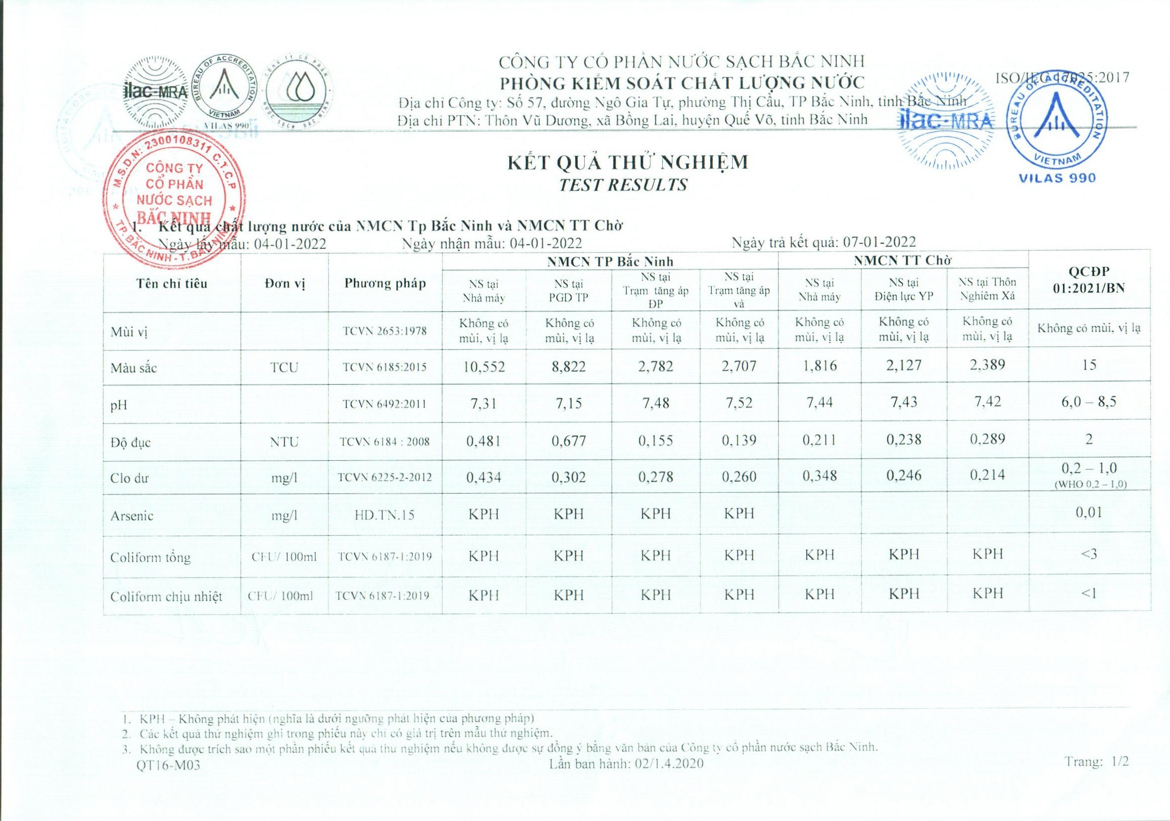 Chỉ số chất lượng nước tháng 1/2022 Đăng bởi Công ty cổ phần nước sạch Bắc Ninh vào lúc 12/01/2022 Chia sẻ: Tin liên quan Chất lượng nước tháng 9 năm 2025 Chất lượng nước tháng 8 năm 2025 Chất lượng nước tháng 7 năm 2025 Chất lượng nước tháng 6 năm 2025 Chất lượng nước tháng 5 năm 2025