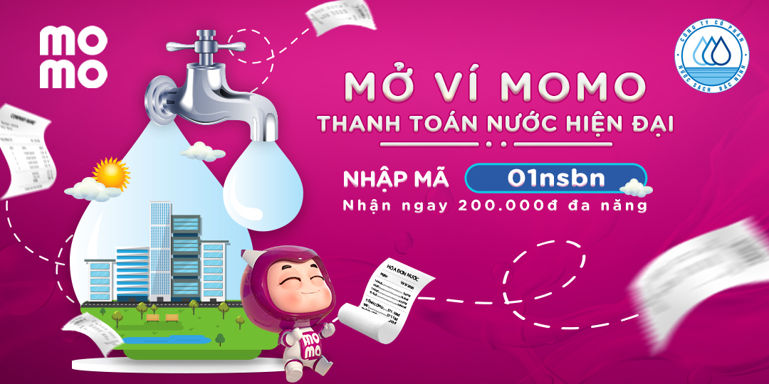 Công ty Cổ phần Nước sạch Bắc Ninh chân thành cảm ơn Quý Khách hàng đã sử dụng dịch vụ của chúng tôi trong thời gian vừa qua! Nhằm mang đến khách hàng dịch vụ an toàn và tiện lợi, Công ty Cổ phần Nước sạch Bắc Ninh đã liên kết cùng Ví MoMo triển khai hình thức thanh toán hóa đơn trực tuyến.